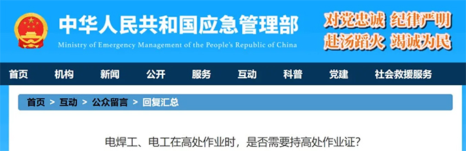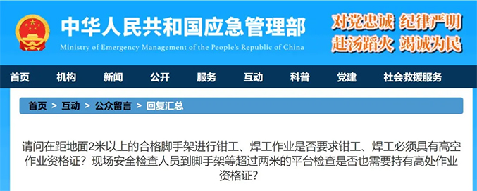 问题1、咨询:企业在日常的生产当中,经常会遇到电焊工、电工进行高处(2米以上)进行检维修或者其他作业,请问电焊工、电工在高处作业时,需要持高处作业证吗?咨询时间: 2021-03-16