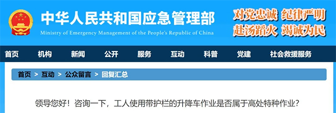 问题9、咨询:领导您好,如果工人使用升高超过2米的登高车进行检维修或其他安装活动,该登高车周边带有合规的安全护栏,员工有较大的作业活动面,此高处作业的基准面是否可以按照登高车的基准面计算?咨询时间: 2021-07-29