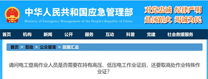 回复:感谢您的留言。《高压电工作业人员安全技术培训大纲及考核标准》《低压电工作业人员安全技术培训大纲和考核标准》规定的培训考核内容中,包含了登高安全用具及其使用、架空线路安装、登杆作业基本技能等。如您在上述范围内作业,可不用重复取高处作业证。回复单位: 安全执法和工贸监管局 回复时间: 2021-04-05