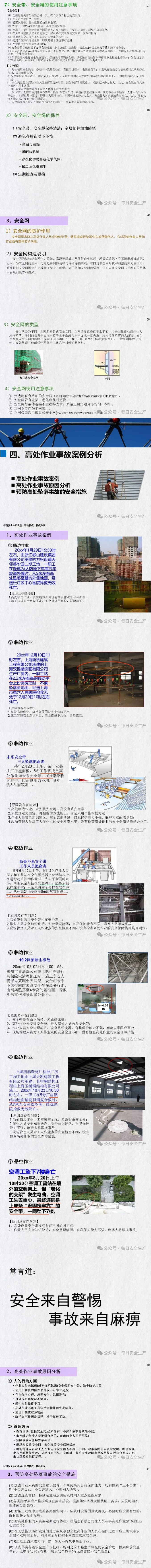 重要提醒:高处坠落为第一大杀手!高处作业指凡在坠落高度基准面2m以上(含2m)有可能坠落的高处进行的作业。请正确系好安全带,切莫心存侥幸。